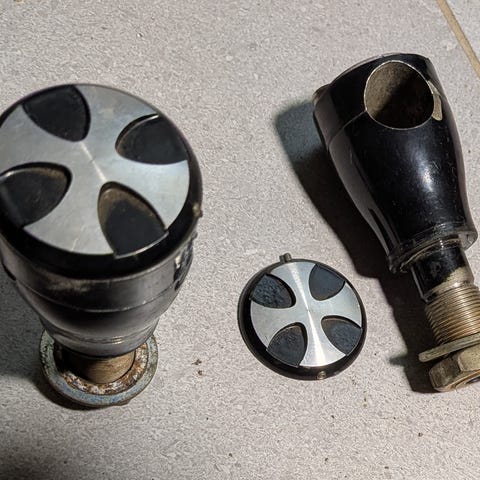 1” risers med huller til kabel gennemføring. 150mm høje med pullback. 22mm gevind. Har været monteret på Suzuki Intruder