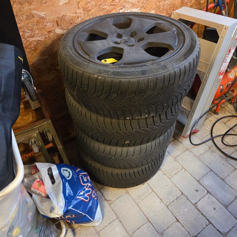 Jeg har disse fælge med vinterdæk fra min A3 Sportback, som jeg ikke bruger længere. De er ikke dårlige, men de har et par små ridser.