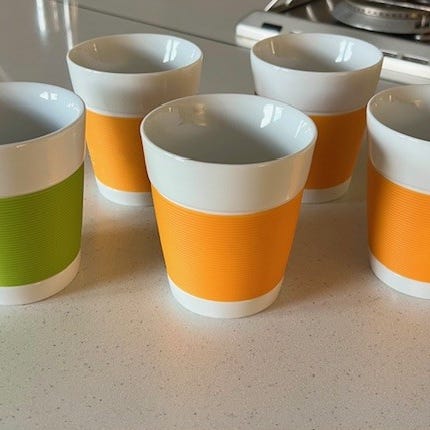 Bodum "Pavina" termokrus i porcelæn med turkis silikonegreb. Smart silikonegreb, så man ikke brænder fingrene på kruset.