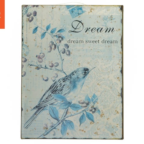 Dekorativ Metalskilt vægplade med fugl og blomstermotiv (str. 35x27 cm)