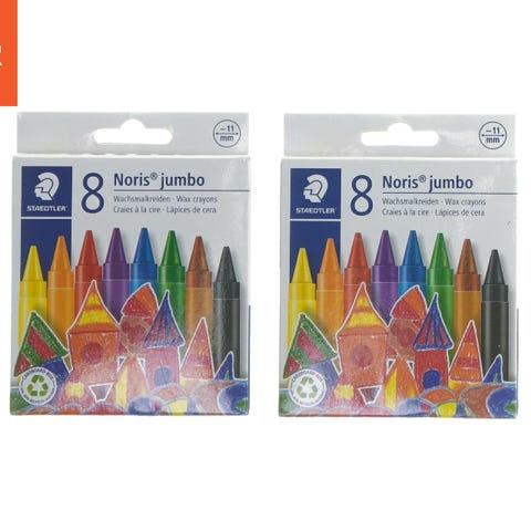 Voksfarver Staedtler Noris Jumbo 8 stk fra Staedtler (str. 2 stk 12,5x9,5 cm)