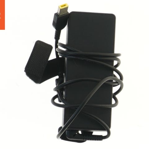 En Lenovo strømforsyning med europæisk stik, designet til at levere strøm til kompatible elektroniske enheder. Størrelsen er 14x5,5 cm og den har en sort farve. Ledningerne er solide og egnede til effektiv opladning. Passer til Lenovo bærbare computere og andre enheder med kompatible stik. Tags: adapter, oplader, power, strømforsyning.