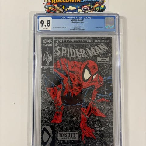 Spider-Man første udgave, graded comic CGC 9.0 af Todd McFarlane, udgivet af Marvel Comics i 1990, engelsk, hæftet binding, nær mint tilstand, nummer 1 Gold Edition med særlige CGC-label. Klik på den blå "gå til varen" knap, for at købe eller byde på denne vare. Den samlede pris vil blive vist inden du afgiver dit bud.
