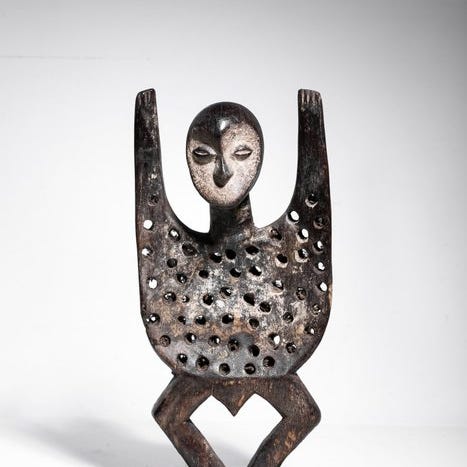 Skulptur af hårdt træ fra Nigeria, tilskrevet Koro-folket, mål 73 cm høj, 25 cm bred og 16 cm dyb, i god stand, solgt uden stativ. Klik på den blå "gå til varen" knap, for at købe eller byde på denne vare. Den samlede pris vil blive vist inden du afgiver dit bud.