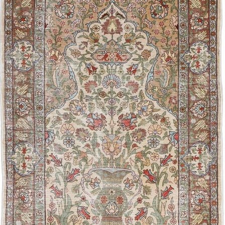 Denne type ægte ren silke Hereke-tæpper er ekstremt sjældne i denne tilstand i betragtning af alder, fremragende stand og håndværk.