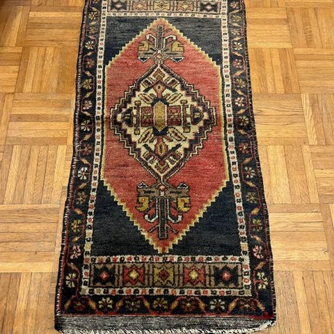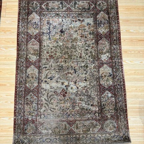 Da dette er et antikt håndlavet tæppe, kan tegn på alder, mindre slid eller fejl være synlige.