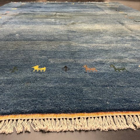 Håndstrikket Gabbeh orientalsk tæppe fra Indien, størrelse 175 x 130 cm, materiale uld på uld, fremstillet i slutningen af det 20. århundrede, i god stand med alders- og brugsspor. Klik på den blå "gå til varen" knap, for at købe eller byde på denne vare. Den samlede pris vil blive vist inden du afgiver dit bud.