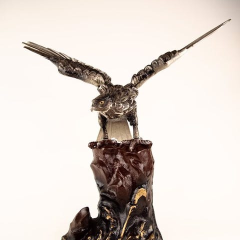 Meiji-tallerken, underskrevet af Murakami Takejiro (Kyoto), fremstillet i kobber og bronze, Japan, 30 cm høj × 23 cm bred × 4 cm dyb, ca. tidligt 20. århundrede, vægt 775 g, i god stand med ensartet antik patina, original/officiel. Klik på den blå "gå til varen" knap, for at købe eller byde på denne vare. Den samlede pris vil blive vist inden du afgiver dit bud.