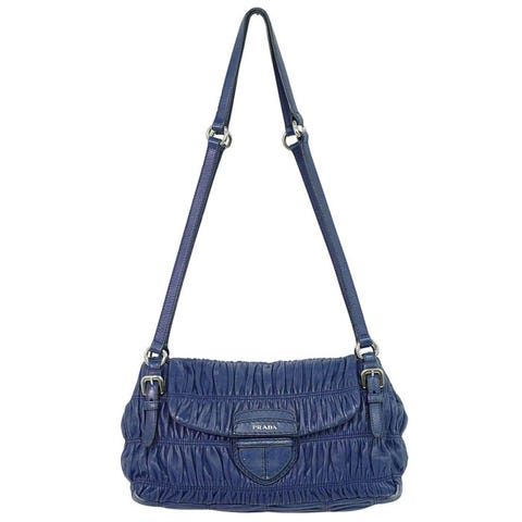 PRADA 2-vejs skuldertas Navy Læder Guld fra Japan