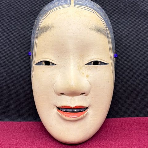 •Tilstand: Brugt, i fremragende stand (Dette er en ældre noh-maske. Der er nogle pletter / slid på grund af ældning.)