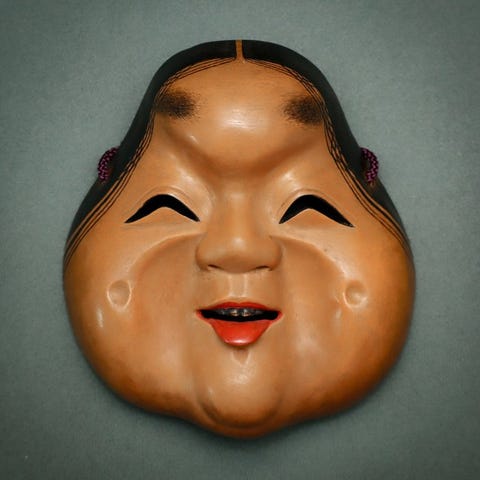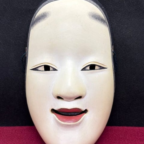 Af høj kvalitet japansk traditionel håndudskåret træ-Nohmaske – Koomote 小面, fint udskåret med søde og nuttede udtryk.