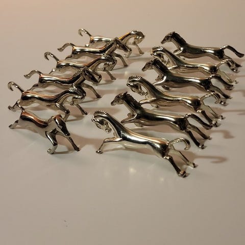 Superbes samling af 6 bordknivholdere i sølvfarvet metal til bordet fra 1950’erne/60’erne.