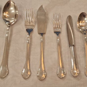 Smukke bestik af alpaca med sølvbelægning til 6.