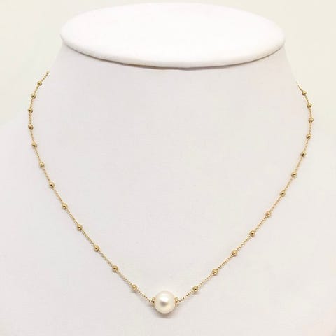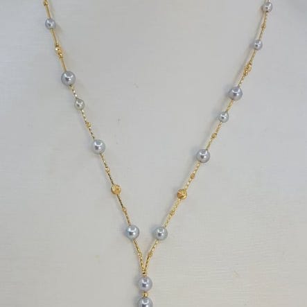 Perlerne med deres smukke farveblanding af hvid, guld og sølv, kombineret med kæden i gult guld, skaber denne storslåede halskæde.