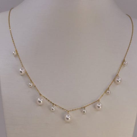 Halskæde - 18 kraat Gulguld - 3x10 mm Akoya-perler