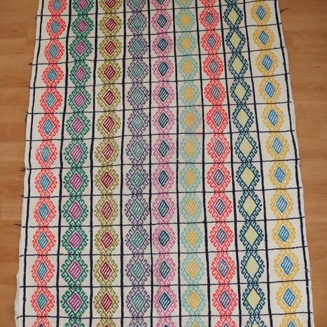 Det er et tæppe, der er vævet med traditionelle motiver fra Yuruk-regionen.