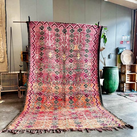 Nyt marokkansk Boujad tæppe – blødt lyserødt uldmåtte med berber-motiver, håndvævet i Marokko af 100% naturligt fåreuld, 160 × 250 cm, farverne lyserød, burgunder, elfenbensfarvet, grøn og sort, i fremragende stand. Klik på den blå "gå til varen" knap, for at købe eller byde på denne vare. Den samlede pris vil blive vist inden du afgiver dit bud.