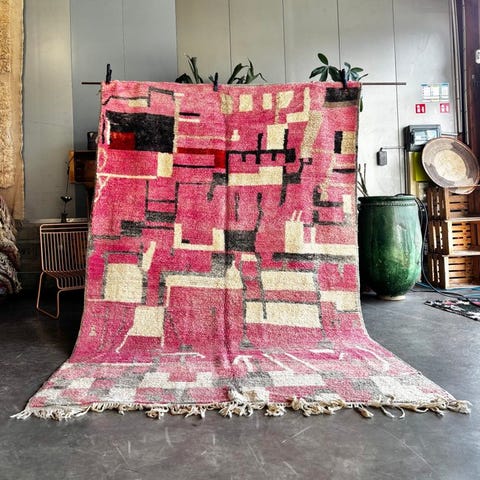 Nyt marokkansk Boujad-tæppe – blødt lyserødt uldteppe med berbermotiver - Tæp...