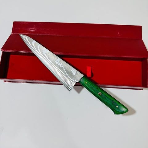 Denne Japanske stil kokkekniv er et mesterligt designet køkkenværktøj, der er skabt for at levere præcision, balance og vedvarende skarphed.