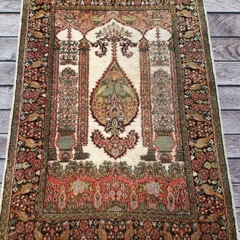 Tæppet ser ud som nyt. Det har en silkeagtig tekstur og er vidunderligt at se på og røre ved.