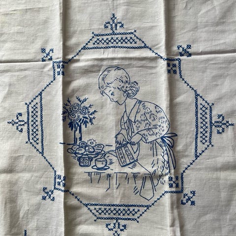 Gardin, b: 63 h: 82, Super sødt håndbroderet køkkengardin fra min mormor, har desværre ikke plads til det. Ingen huller eller pletter.
