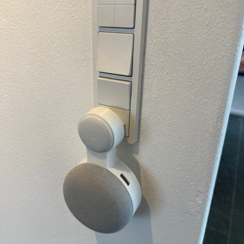 Google Nest højttaler- og skærmsæt i grå og hvid. Sættet omfatter flere smarthøjttalere i forskellig størrelse samt en smart skærm med touchskærm. Enhederne har stofbeklædt overflade og medfølgende netadaptere. Velegnet til brug som stemmestyrede højttalere og skærm i hjemmet, f.eks. til musikafspilning, styring af smart home-udstyr og visning af information på skærmen.