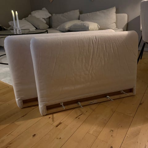 Der er nogle grønlige pletter som ikke er forsøgt fjernet, både på sidesektionen men også det lille hjørne på den mindste pude. Ses ikke når puderne er på.