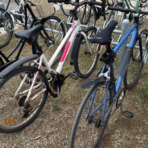 Probably needs a new inner tube for the front wheel, but it holds air fine.
