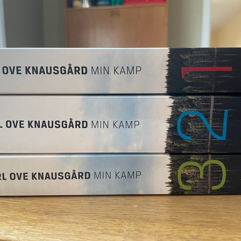Karl Ove Knausgård Min kamp bog. Roman udgave på dansk, udgivet af forlaget Lindhardt og Ringhof. Indbundet bog med omslagstekst på bagsiden. Velegnet til læsere af moderne nordisk litteratur og selvbiografiske romaner.