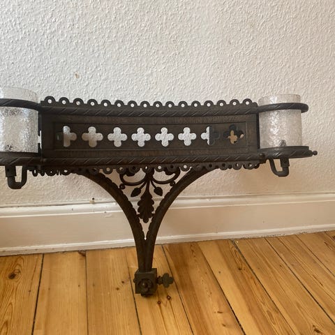 Hængelampe , Smedejern, 100 år gl., Ældgammel smedejernslampe til at hænge i loftet