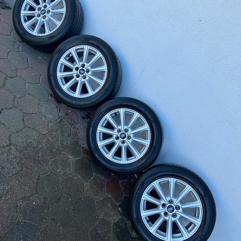 Gode fælge, ikke skæve men har brugsspor. 2 nye dæk med 6 mm. mønster, 2 dæk med 2 mm. mønster.