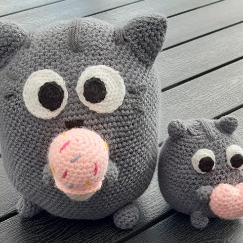 Håndlavet hæklet kat bamse grå