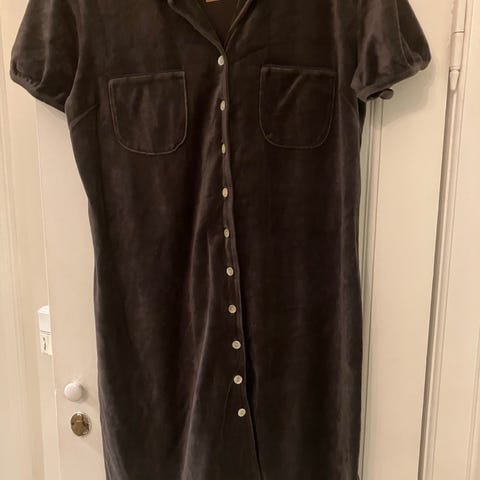 Modellen har 3/4-lange ærmer, bindebånd i taljen og flæsedetaljer ved halsudskæring, ærmer og underkant.