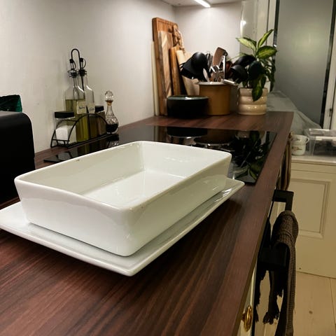 ovnfast fad porcelæn hvid med grøntsagsmotiv