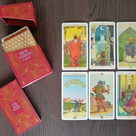 Har været kombineret med Before tarot, New vision tarot og RWS Panorama for at få mere dybde i et oplæg.