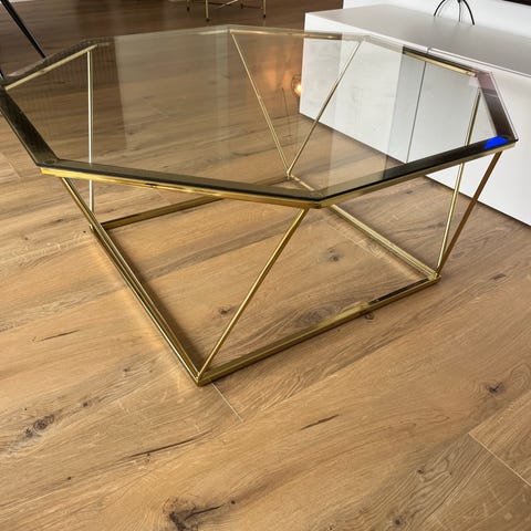 Fint kvadratisk sofabord med glasplade.