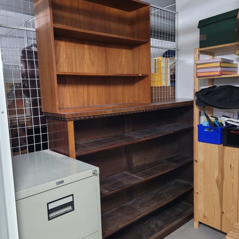 Reol i massiv træ - fraset siderne som er laminat.