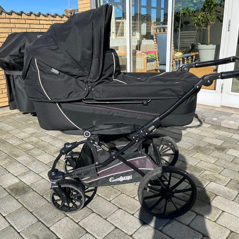 Vognen har stor liggedel med kaleche og vindbeskyttelse samt rummelig varekurv under stellet.
