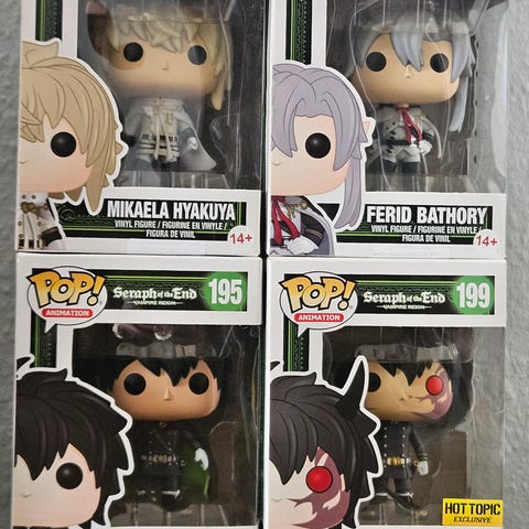 Fuldt sæt af figurer fra Owari no Seraph. De er uåbnede og der er ingen solskade på æsken heller. Tager gerne nogle bedre billeder hvis det ønskes.