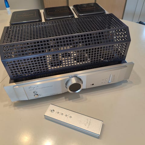 Virkelig lækker integreret 845 forstærker. Som også kan bruges som ren effekt forstærkes. Knap 3 år gammel. Med orginal kasse og tilbehør. Nypris ca 48000kr. Modellen har fjernbetjeningen. Kan mod en mere pris på 5000 kr købes med næsten ny kvalitet rør fra JJ og full music og Linai Værdi ca 10000kr skal opleves