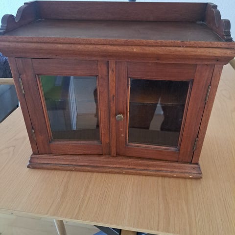 Ældre skab i træ med låge og skuffe