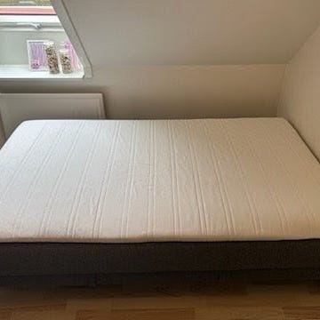 IKEA topmadras i hvidt tekstil. Topmadrassen er sammenrullelig og har en struktureret, åndbar overflade. Egnet som ekstra komfortlag oven på en madras i soveværelse eller gæsteværelse. Velegnet til almindelig seng eller boxmadras, afhængigt af mål.