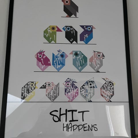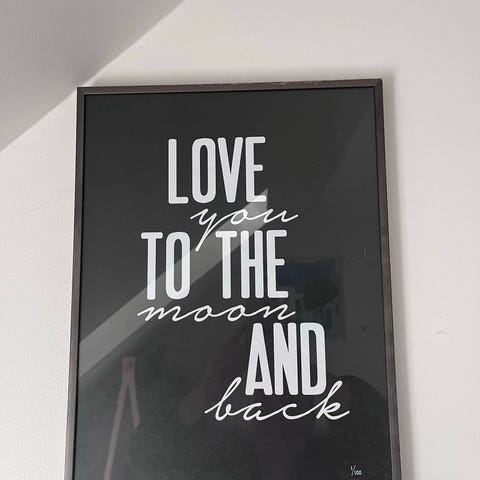 By Lux plakat 30x40 cm inklusiv ramme med turkis fugl på og teksten “Birdy Nam Nam”