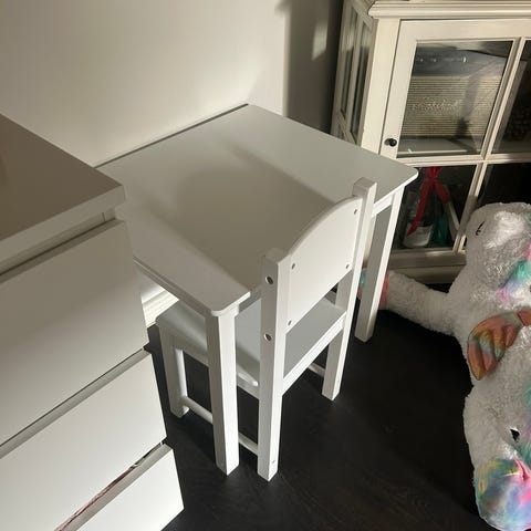 Børnebord i halvrund form. Mærke wehrfritz godt og solidt. Bordpladen er rød på oversiden og udført i træmateriale med træfarvet kant og underside. Der medfølger træben, som monteres under bordpladen. Bordet er egnet til børn og kan bruges som aktivitetsbord, tegnebord eller lille spiseplads i børneværelse, institution eller legerum. Konstruktionen er i træ med beslag til fastgørelse af benene på undersiden af bordpladen.