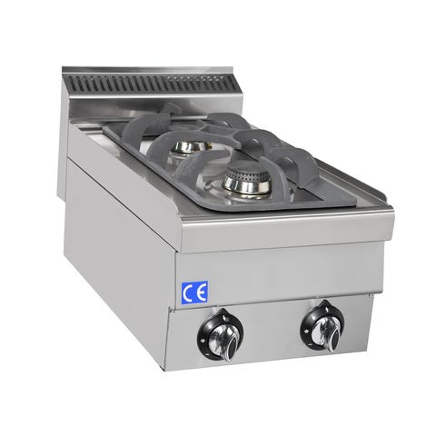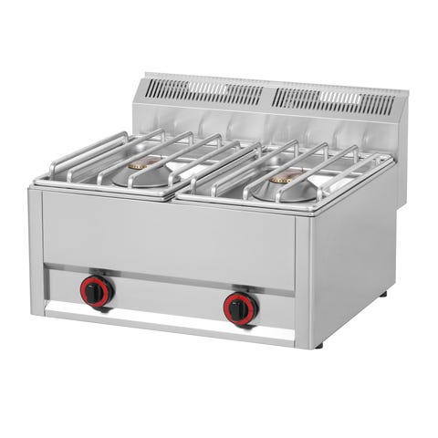 Gaskomfur 2 blus (2x 5 kW) – Bordmodel – Rustfrit stål – B760 x D400 x H200 mm