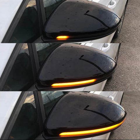 Dynamiske LED blinklys til sidespejlene på VW Golf 8 (Arteon 2017 - 2023; ID3 2020 - 2023; Passat B8 2015 - 2023, T-ROC facelift 2022-, Cupra Born 2021-2023) e-godkendte ift syn, PLUG&PLAY, ingen fejlmeddelser, fed opgradering, nemme at installere, ingen kodning nødvendig. Virker sammen med indstigningslys/puddle light under sidespejlene. (Kommer med vejledning, videolink og værktøj)