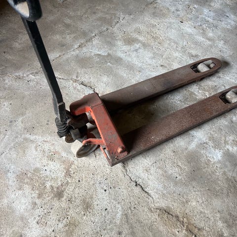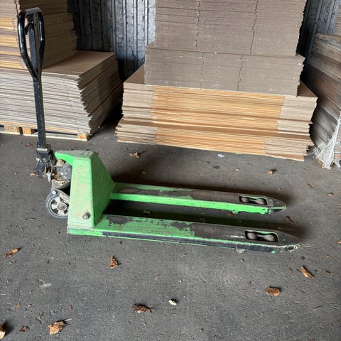 Super fin palleløfter, fejler intet. Med lange gafler 151cm.