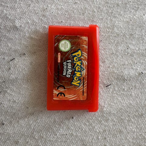 Nintendo Pokémon FireRed spil til Game Boy Advance. Spilkassette i rød udgave, beregnet til brug i Game Boy Advance-konsoller. Egnet til én spiller ad gangen med mulighed for kamp og bytte via link-kabel, afhængigt af udstyr og version. Spillet er den europæiske udgave med CE-mærkning på kassetten.