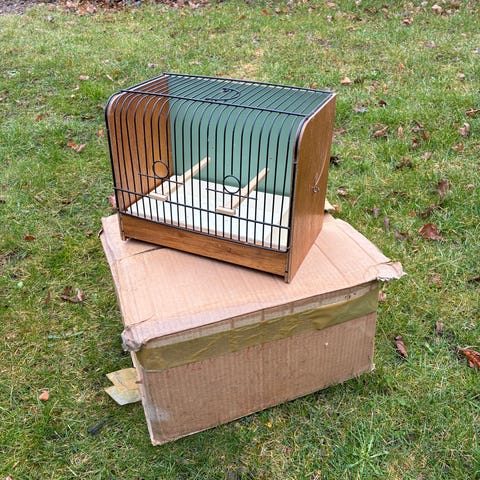 Voliere udendørs fuglebur/ katte i metaltråd og træramme. Konstruktionen er beregnet til udendørs brug og er opbygget af trådnet på stolper med dør for adgang. Egnet til hold af fugle eller som indhegning til mindre dyr. Nedtages og transporteres væk. Gratis