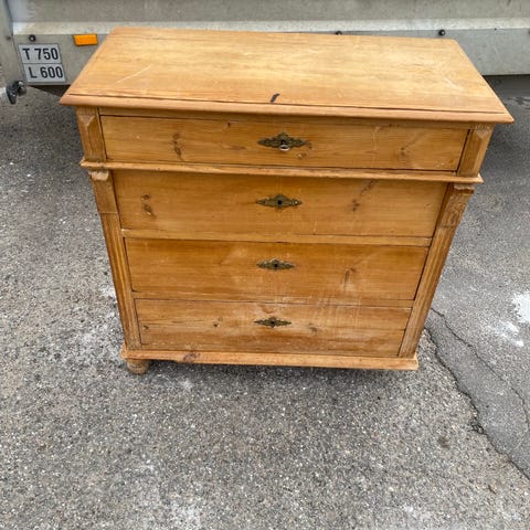 Kommode træ blå med håndmalet dekoration